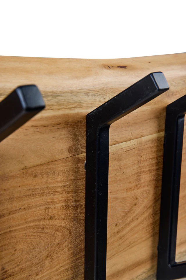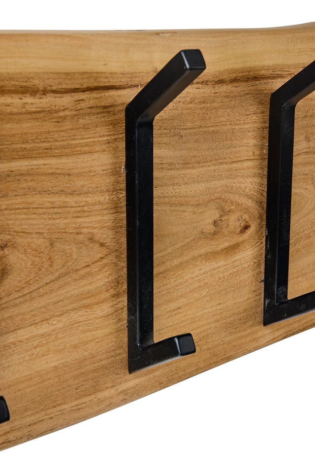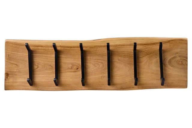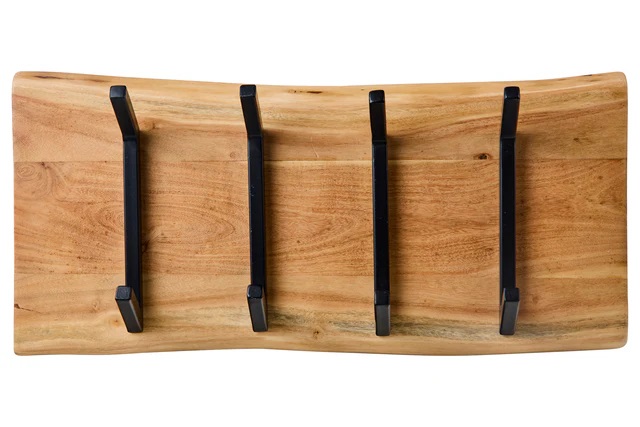 Appendiabiti Mango , struttura in legno massello di mango, finitura naturale con vernice a base d’acqua. Ganci in ferro.