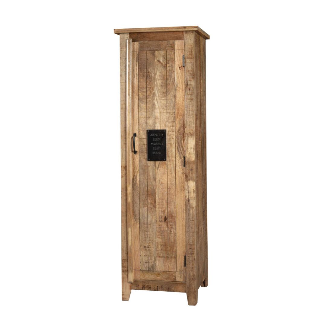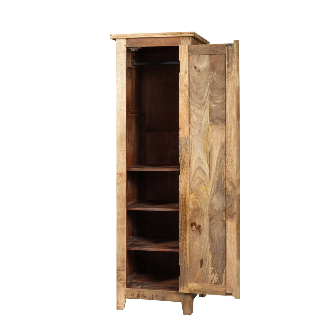 Armadio Stipo Newport 56 in legno massello di mango composto da 1 anta con maniglia. All’interno troviamo un bastone appendiabiti e 3 ripiani con mensola.