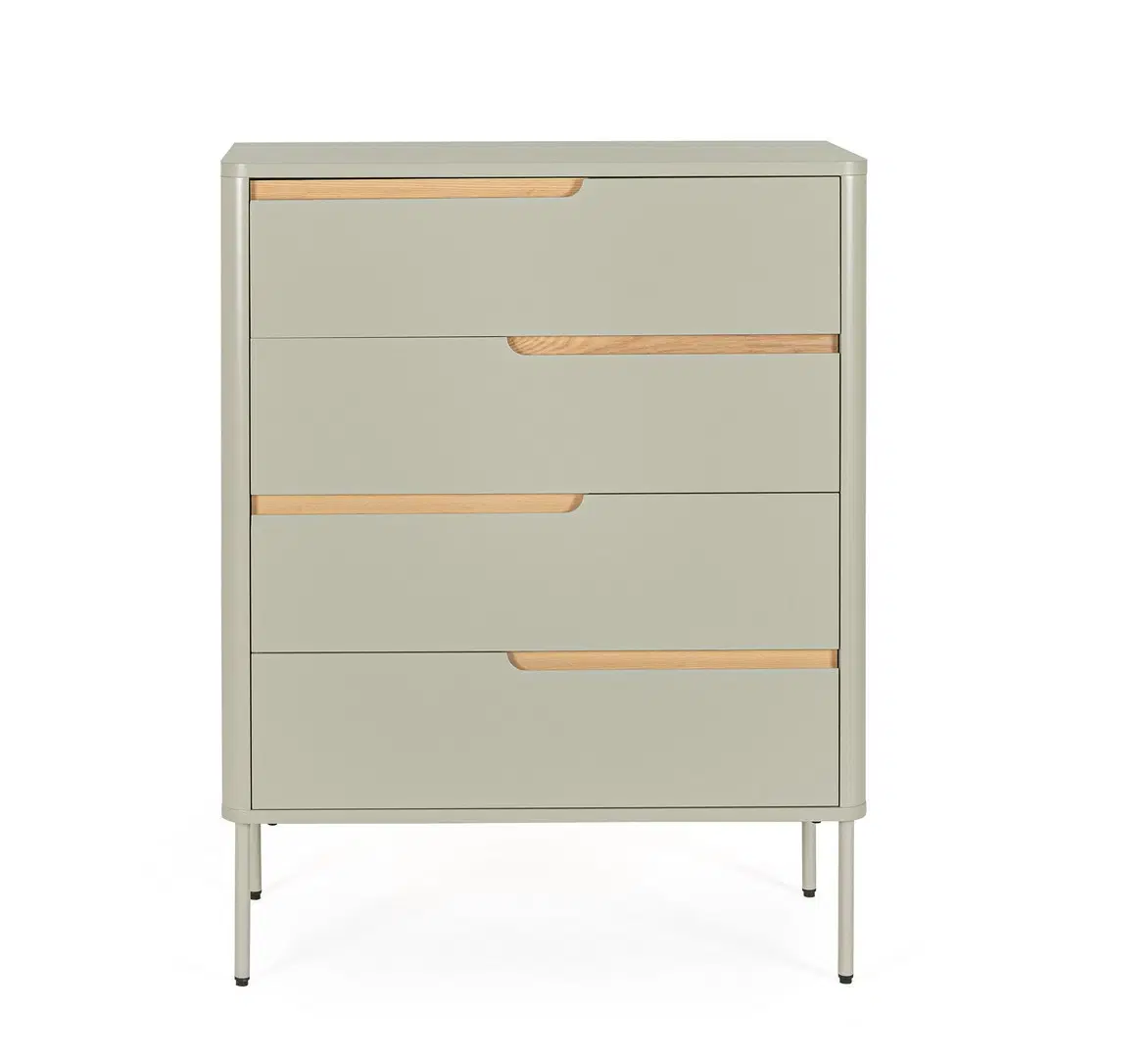 I quattro cassetti sovrapposti offrono uno spazio di archiviazione generoso e ben organizzato, perfetto per custodire capi d’abbigliamento, biancheria o oggetti personali mantenendo sempre l’ordine visivo. La pulizia delle linee, priva di elementi decorativi superflui, esalta la precisione costruttiva del modello Nathan, rispecchiando la cura per il dettaglio e la qualità dei materiali. Grazie alla sua silhouette slanciata e alla colorazione versatile, questa cassettiera rappresenta un investimento duraturo capace di adattarsi a diverse evoluzioni di stile all’interno della casa.