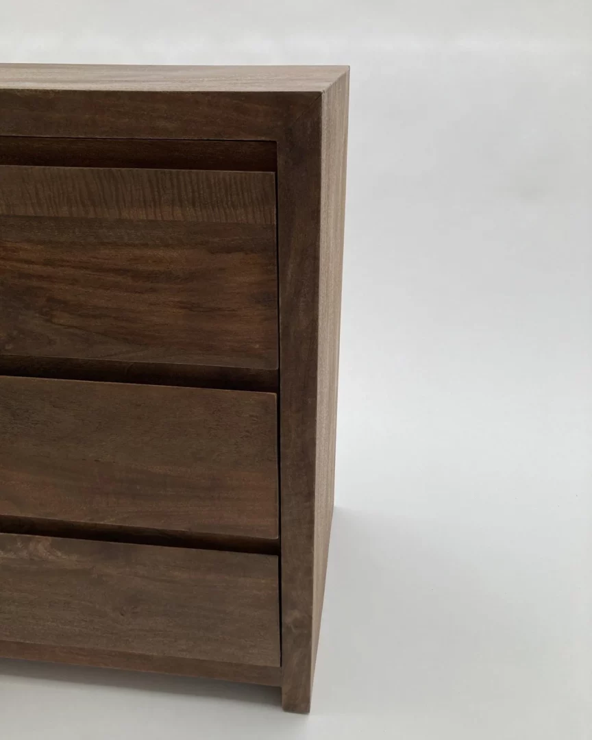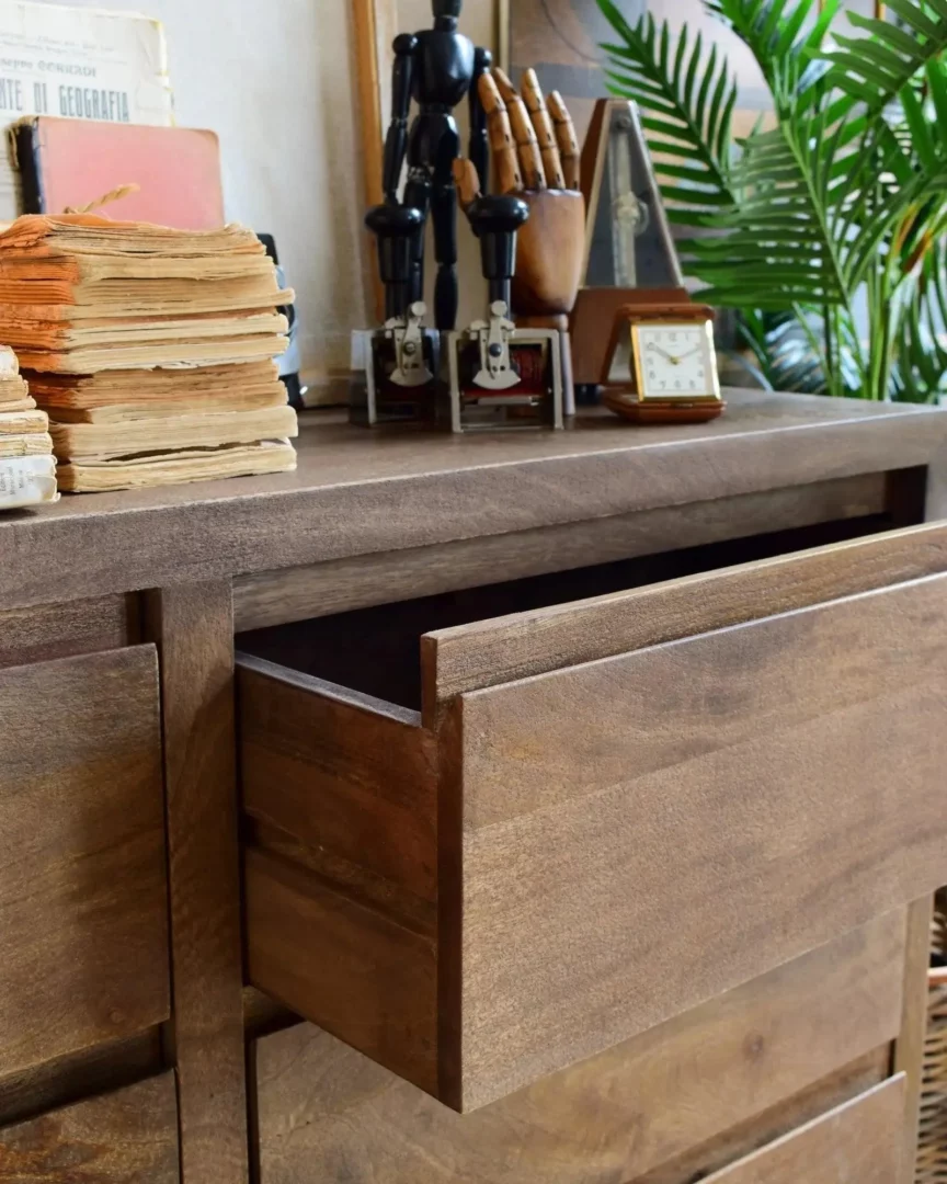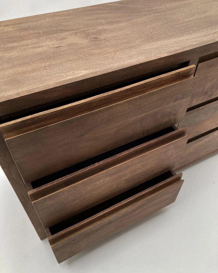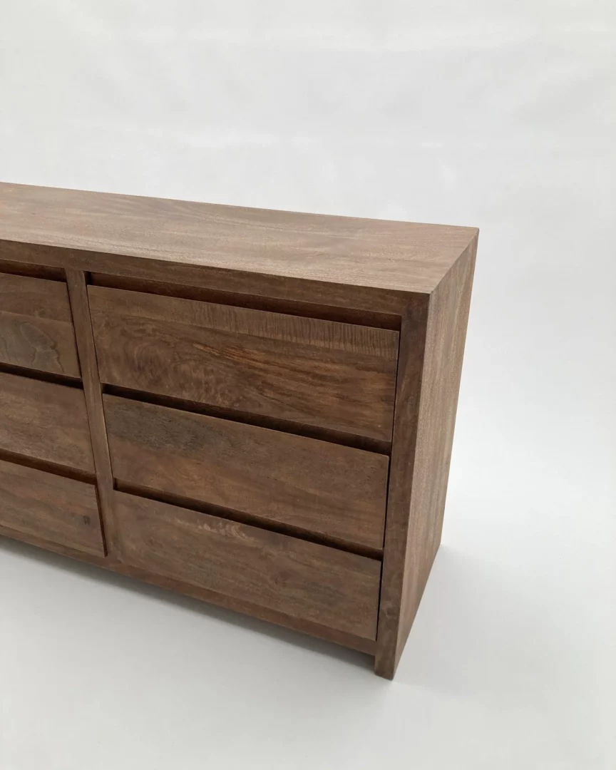 Cassettiera 6Css Terra 130, Cassettiera composta da 6 cassetti, realizzata in legno massello di mango con finitura naturale spazzolata e sabbiata; colore noce medio.