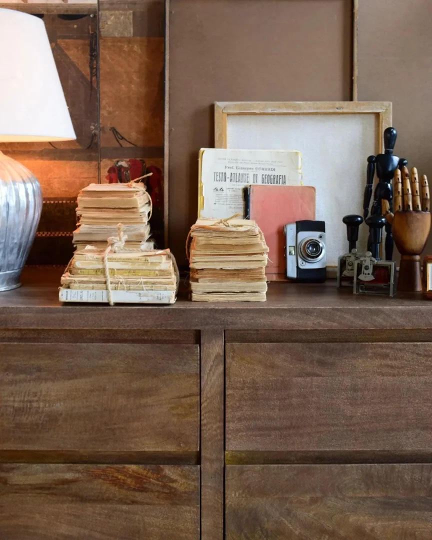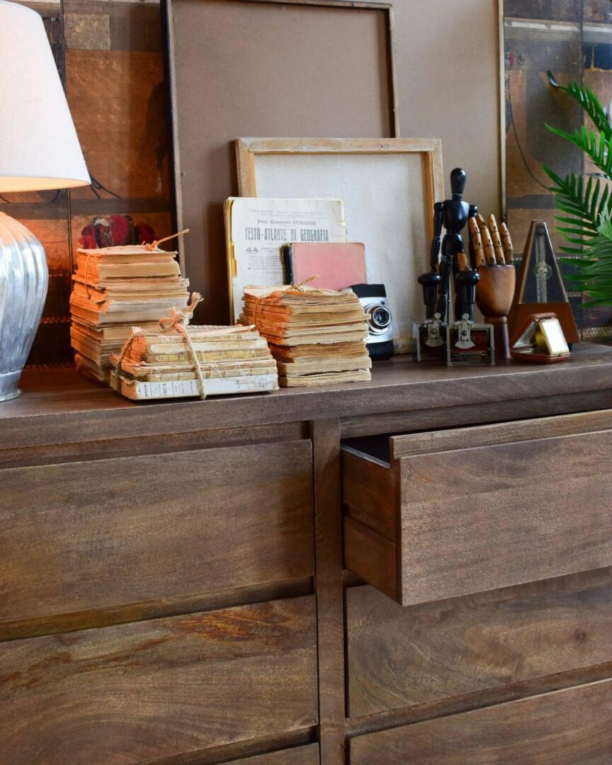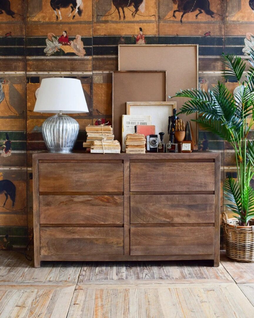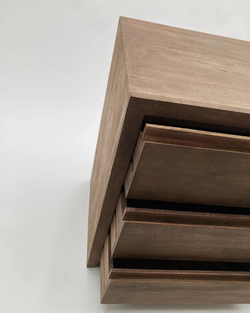 Cassettiera 6Css Terra 130, Cassettiera composta da 6 cassetti, realizzata in legno massello di mango con finitura naturale spazzolata e sabbiata; colore noce medio.