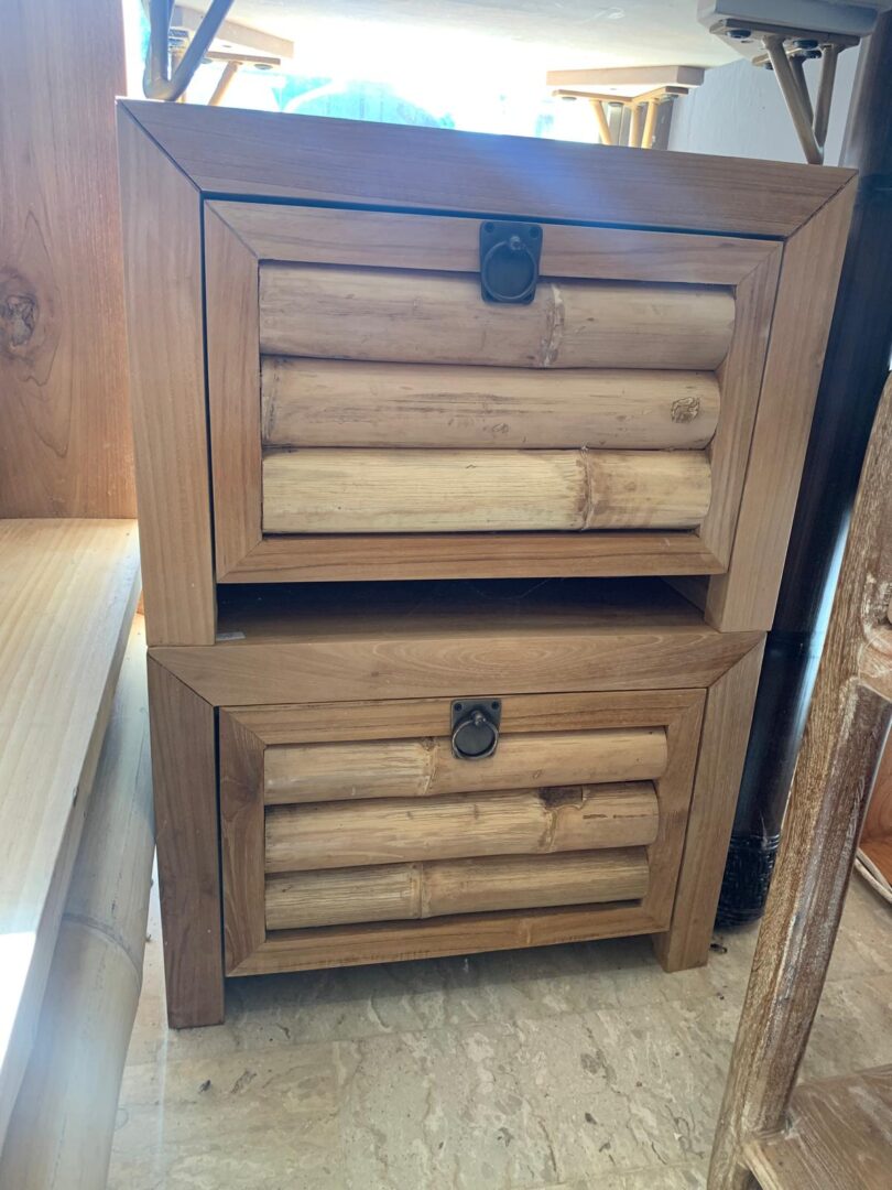 Comodino Teak Bambù, In legno massello di teak naturale, realizzato interamente a mano,