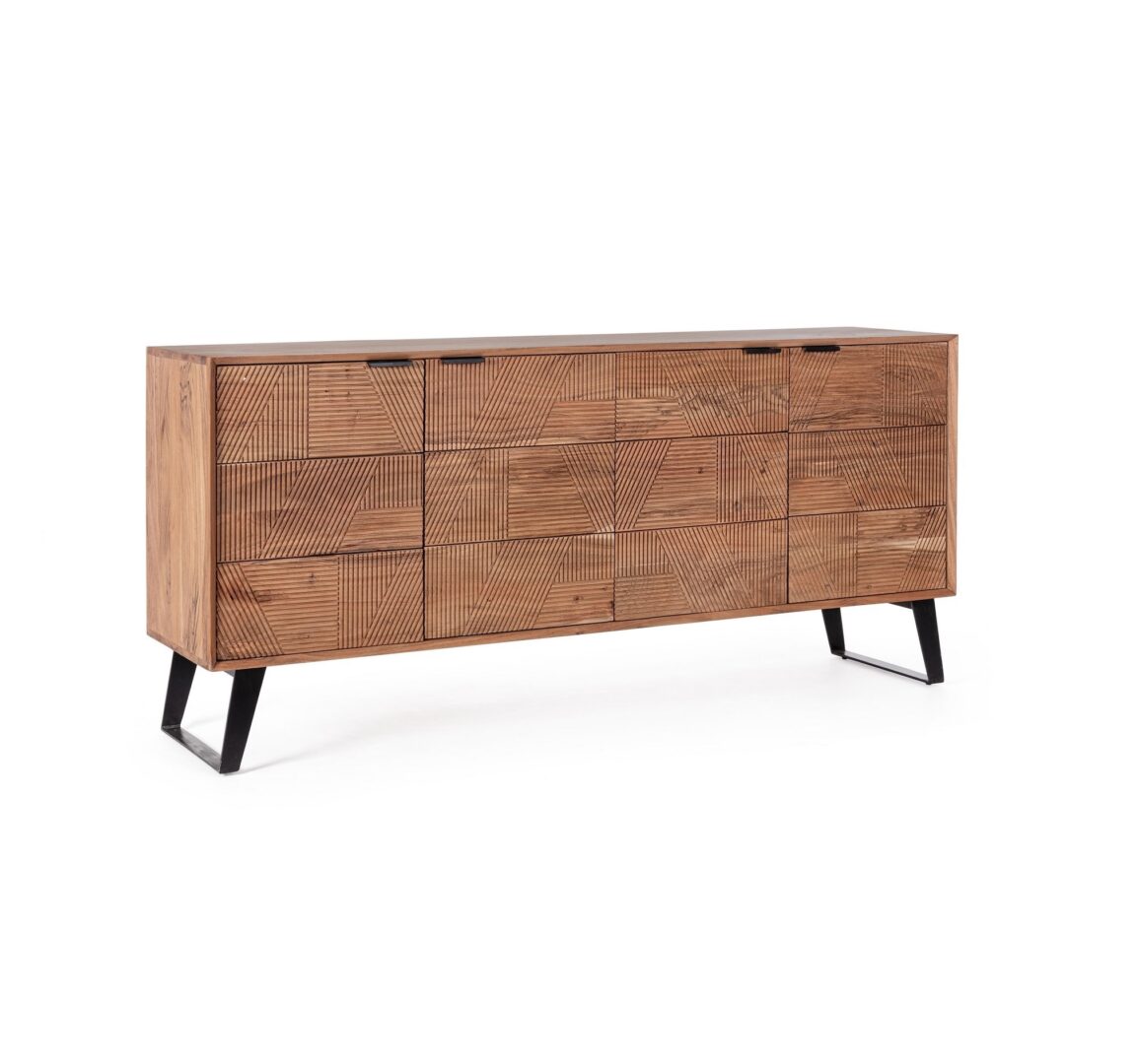 Credenza 4A Isar, spettacolare credenza in legno massello di acacia. Composto da 4 ante. Il frontale di questo mobile è tutto intarsiato a mano. Finitura acrilica protettiva. Maniglie in metallo.