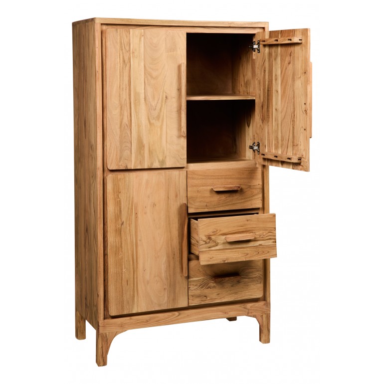 Credenza Alta Seoul 3A-3Css, mobile dal design raffinato e dalle linee moderne, ideale per arricchire il tuo soggiorno con un tocco di calore naturale. Realizzata in legno massello di acacia, questa credenza offre una combinazione perfetta di estetica e praticità.
