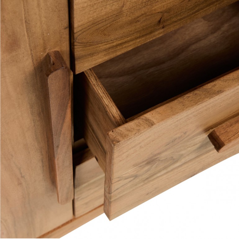 Credenza versatile, Perfetta per soggiorni, sale da pranzo o ingressi, si adatta facilmente a diversi stili d’arredo. Il legno di acacia garantisce una lunga durata nel tempo, mantenendo la sua bellezza anche con l’uso quotidiano.