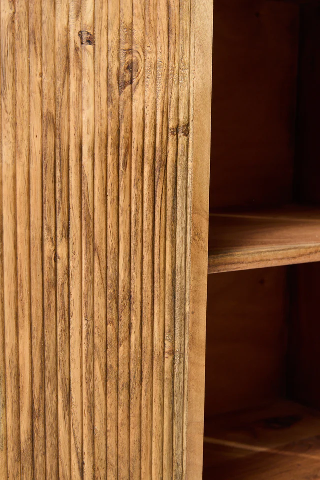 Dona un tocco di fascino etnico alla tua casa con questa splendida credenza, realizzata in legno massello di acacia dal colore naturale.