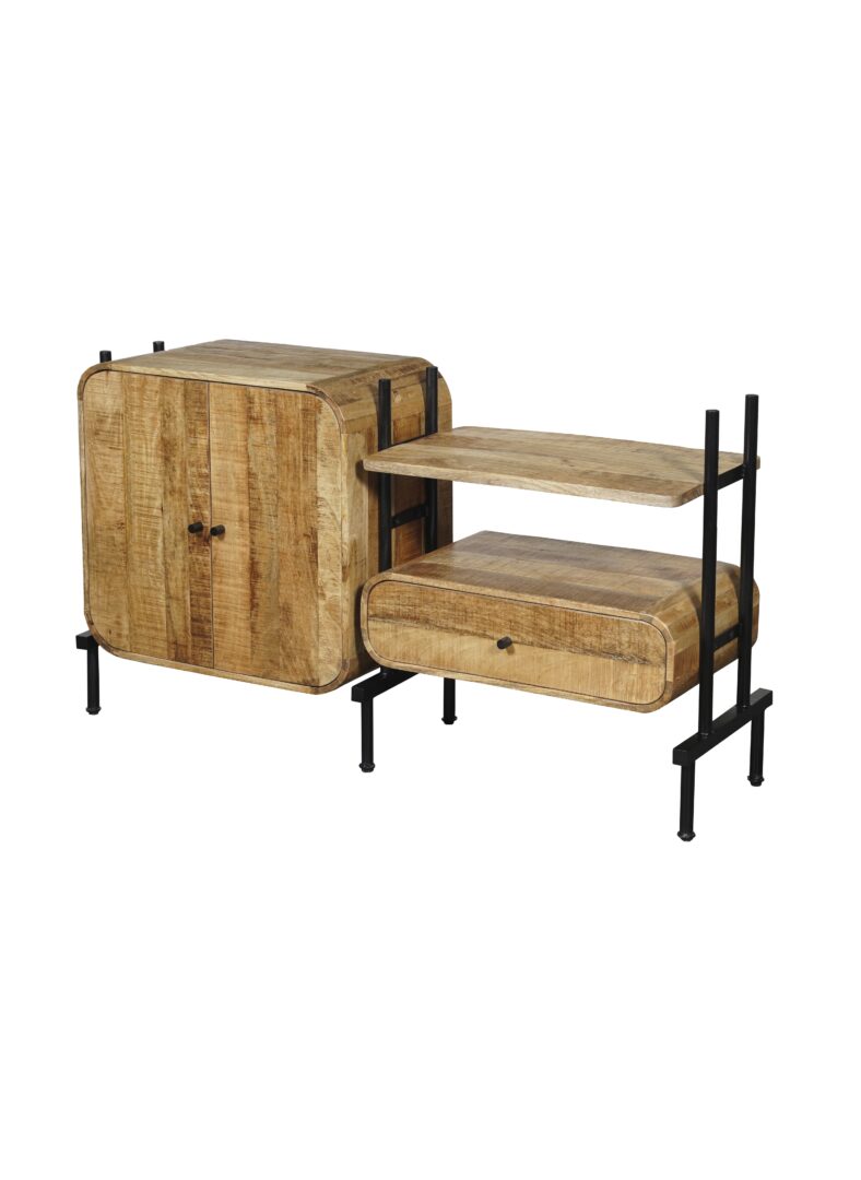 Composta da 2 ante con mensola interna, maniglie e gambe in ferro battuto. 1 cassetto e 2 ripiani.