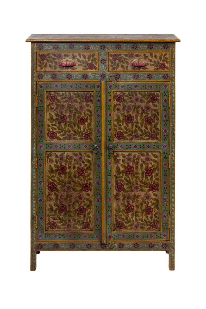 Perfetta per il soggiorno, la sala da pranzo o l’ingresso, questa credenza etnica unisce funzionalità ed estetica, creando un’atmosfera floreale.