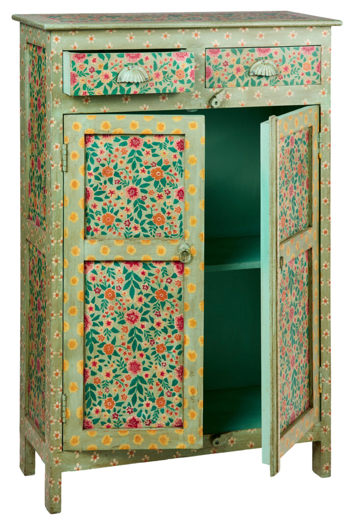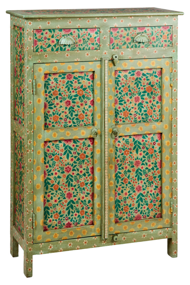 Questa Credenza è un pezzo d’arredo che unisce funzionalità e design artistico, perfetta per chi desidera aggiungere un tocco di originalità e colore alla propria casa. Realizzata in legno massello di mango, questa credenza presenta una superficie finemente intagliata e dipinta a mano con motivi floreali, richiamando l’estetica boho-chic e l’artigianato tradizionale.