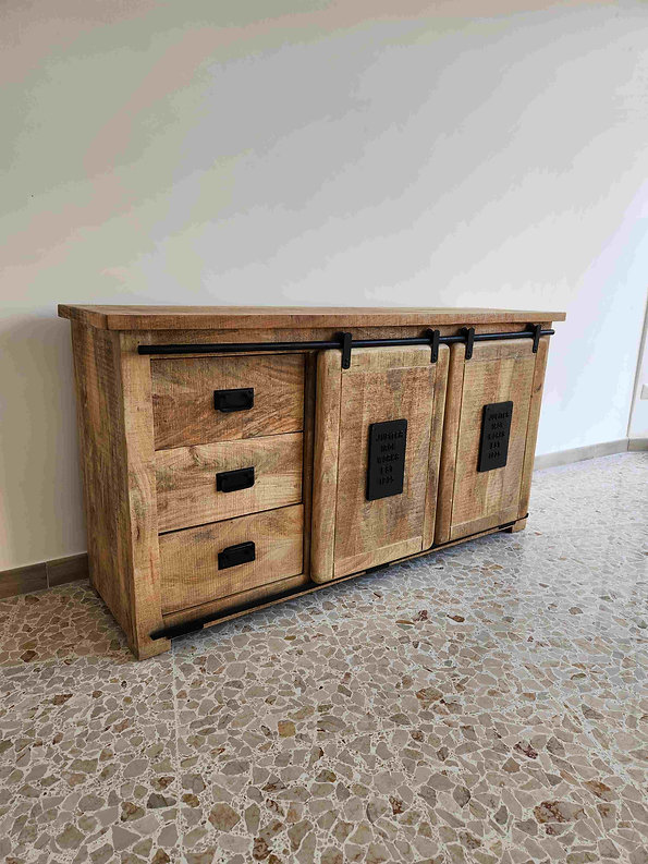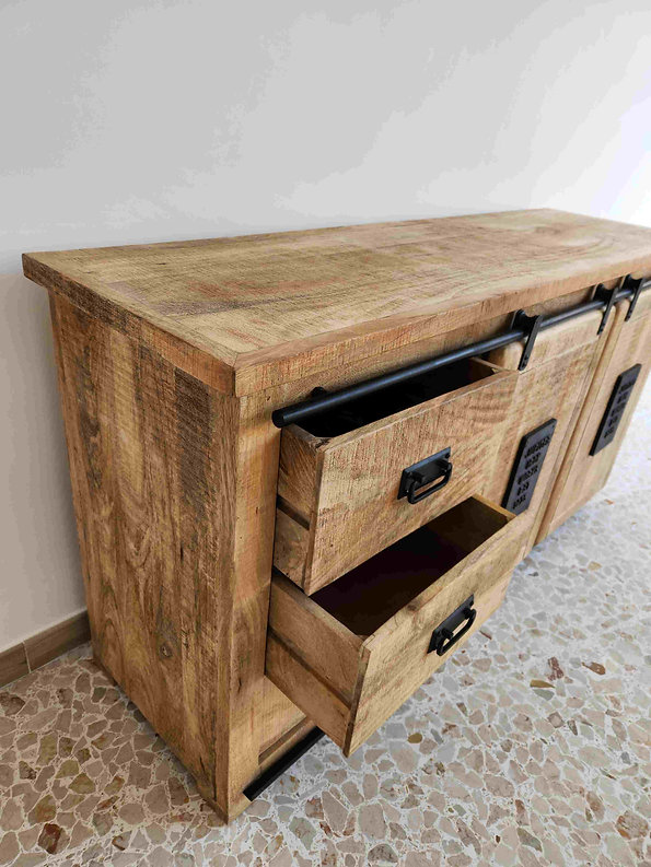Credenza Jupiter Industrial 160 , Credenza Industrial Jupiter realizzata in legno massello con dettagli in ferro e ghisa.