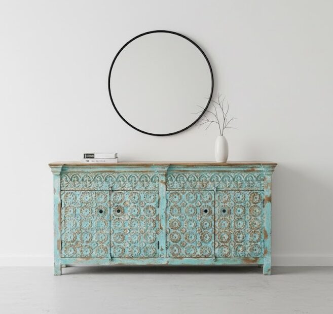 Dal forte carattere etnico e dall’anima autentica, questa credenza unisce estetica e funzionalità, diventando la protagonista ideale di soggiorni, sale da pranzo o spazi ricercati che vogliono distinguersi. Il legno massello garantisce solidità e durata nel tempo, mentre l’intaglio manuale racconta una storia di tradizione, passione e cultura.