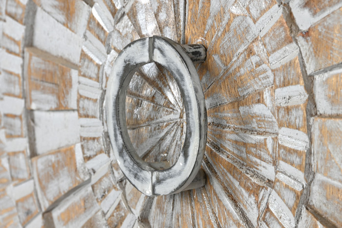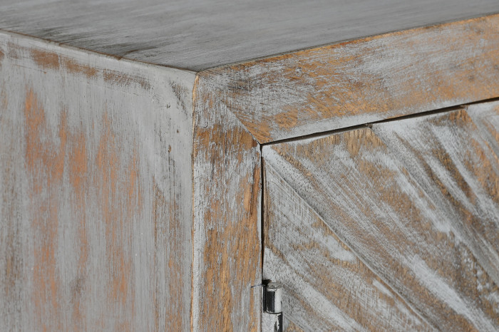Credenza in vero legno, Unica ed originale nel suo genere con ante lavorate interamente a mano. Colore decapato bianco.