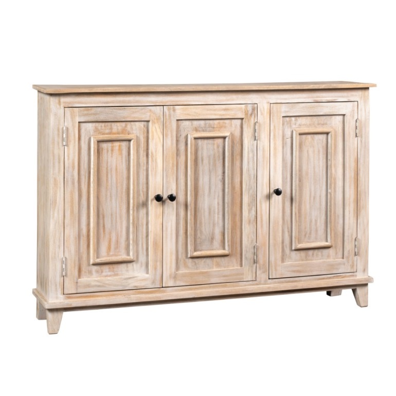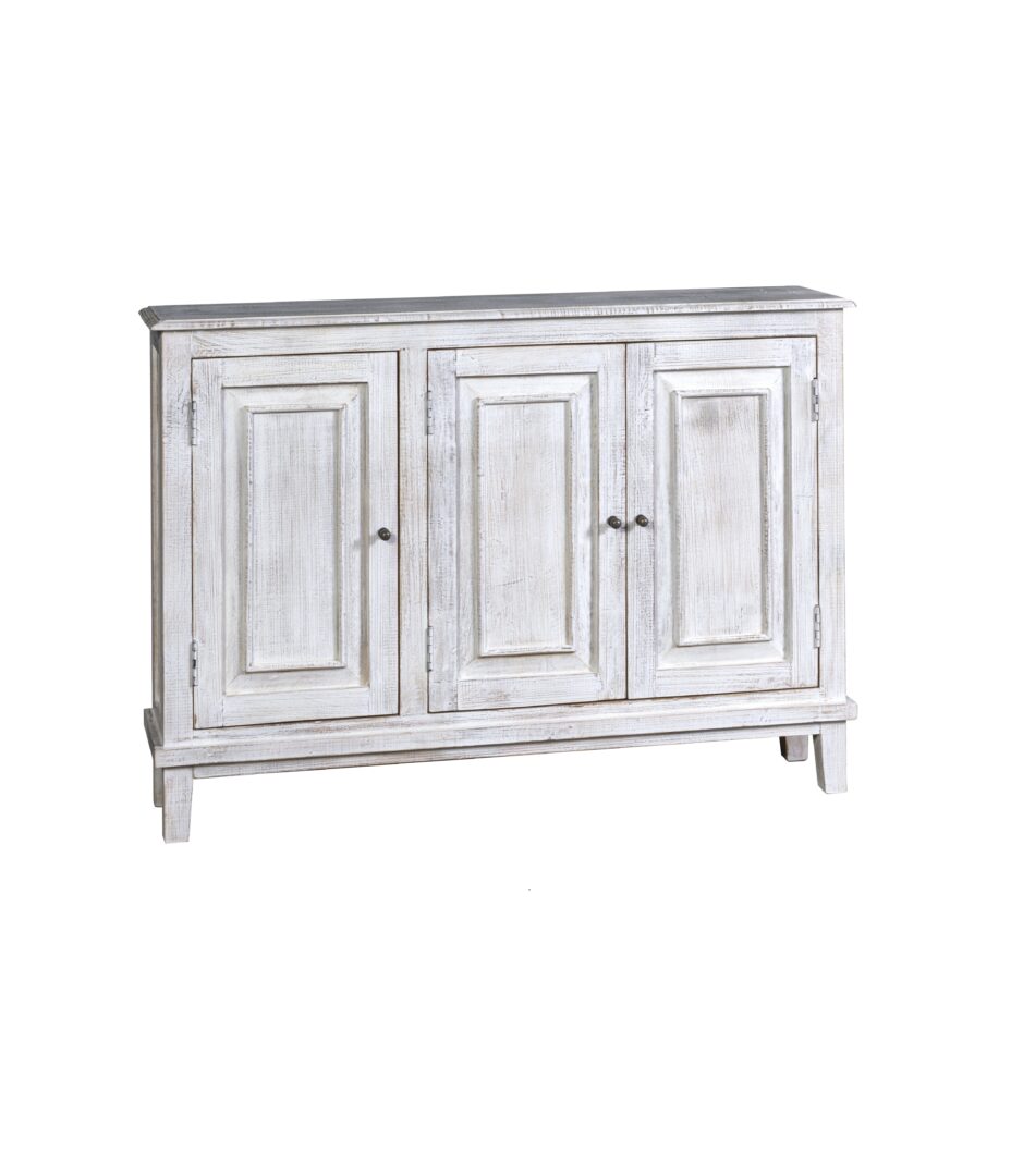 Credenza Provence 3 Ante , in legno massello di mango lavorato artigianalmente decapato bianco.