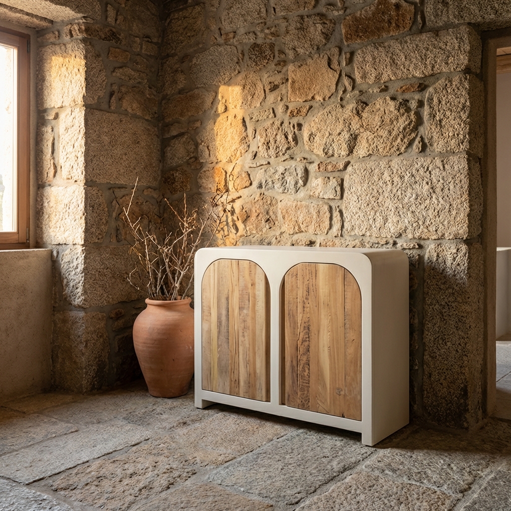 Grazie al suo design curvo e materico, la credenza artigianale Roma si adatta perfettamente a salotti, sale da pranzo o ingressi in stile classico, moderno o country chic.