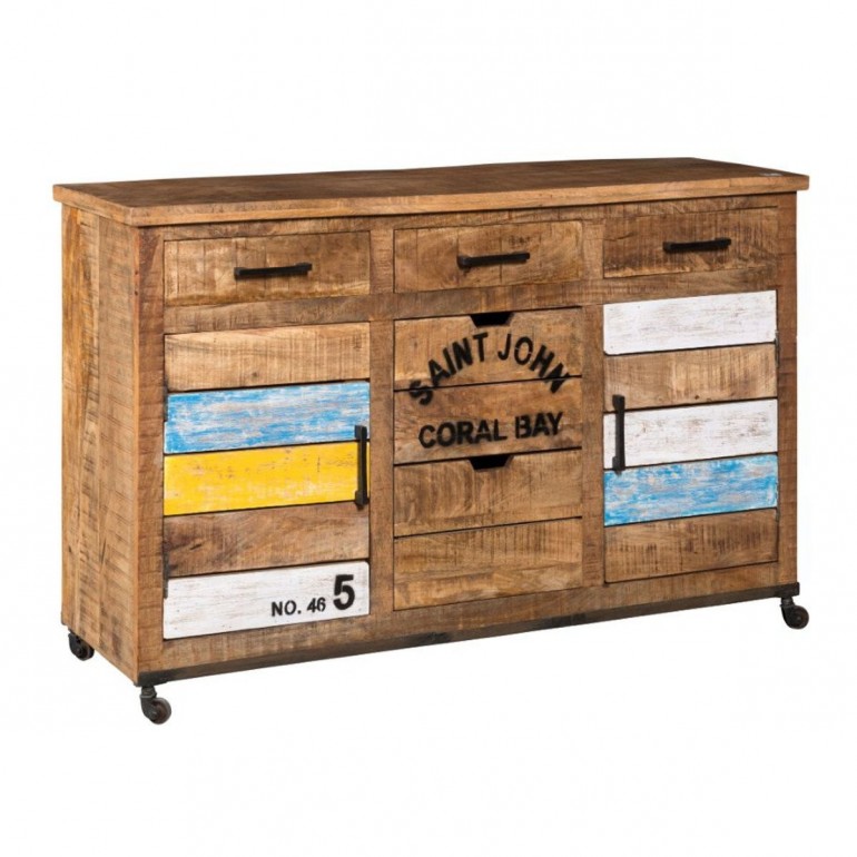 Credenza Saint Joh 5Css+2A , credenza costruita interamente in vero legno massello di mango.