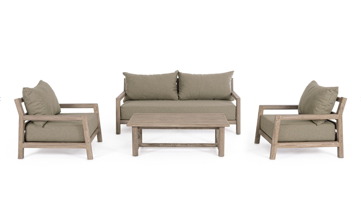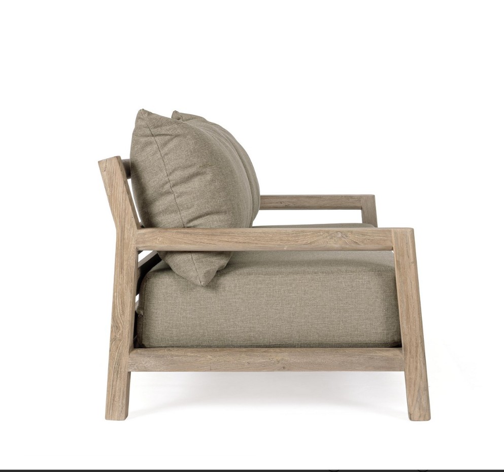 I cuscini sfoderabili in tessuto idrorepellente completano il divano Maynard offrendo comfort e praticità, senza rinunciare all’estetica. Progettati per resistere agli agenti atmosferici, garantiscono una seduta accogliente e facile da mantenere nel tempo. Ogni divano Maynard è un pezzo irripetibile, con dettagli e venature proprie, pensato per chi desidera arredare il giardino o la terrazza con un prodotto autentico, sostenibile e dal fascino senza tempo.