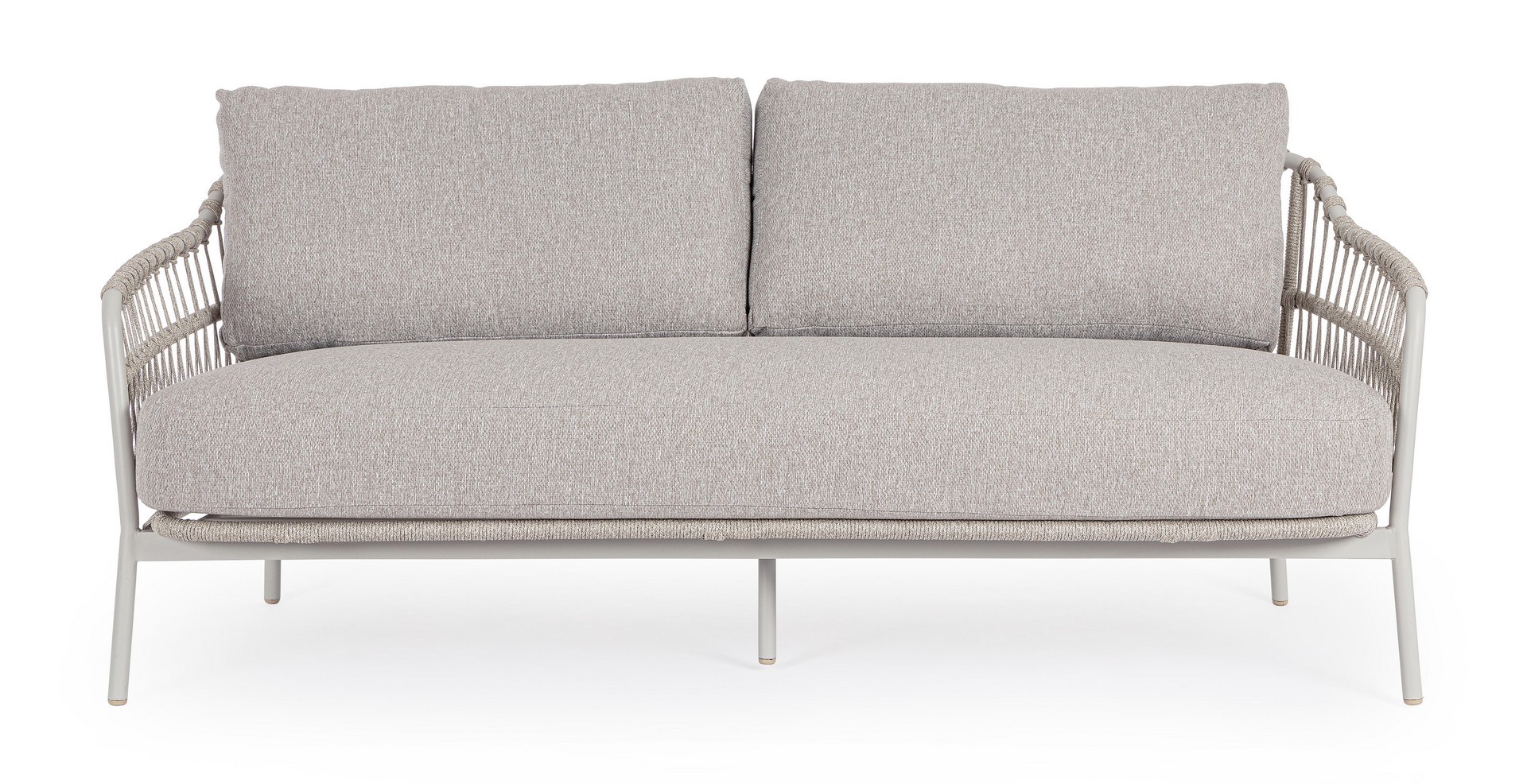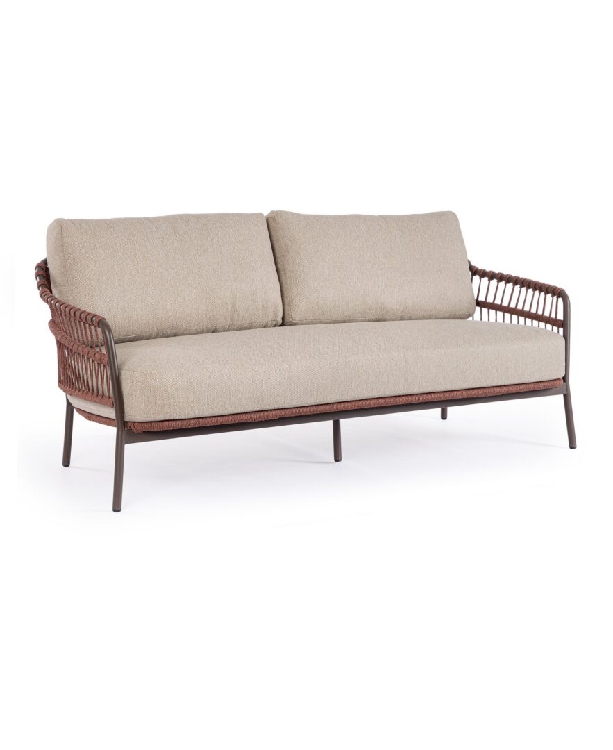 DIVANO 2-3P TALAIA , La struttura del divano è realizzata con struttura in acciaio inossidabile.. L’intreccio del divano è in corda per esterno (polipropilene)