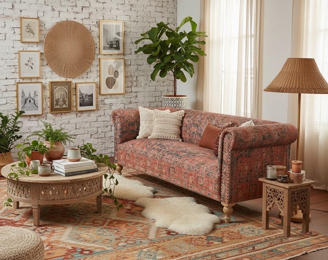 Il design etnico, ricco di fascino e autenticità, rende questo divano perfetto per soggiorni, salotti, spazi relax, boutique, hotel e locali dallo stile ricercato. Le linee decise e il colore profondo si integrano armoniosamente in ambienti boho, etnici, vintage o contemporanei, diventando un vero elemento protagonista.