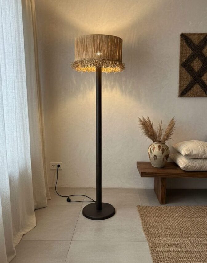 Il paralume in fibra naturale è il vero protagonista di questa creazione, portando con sé una texture ricca e una trama intrecciata che celebra l’artigianalità e il design ecosostenibile. Una volta accesa, la lampada diffonde una luce morbida e filtrata, proiettando sulle pareti ombre delicate che invitano al relax e creano un rifugio accogliente lontano dalla frenesia quotidiana. Grazie alla neutralità delle sue tonalità e alla nobiltà delle materie prime, questo complemento d’arredo si sposa armoniosamente con stili che spaziano dal boho-chic all’etnico moderno, rappresentando una scelta di stile senza tempo per chi ama circondarsi di bellezza autentica.