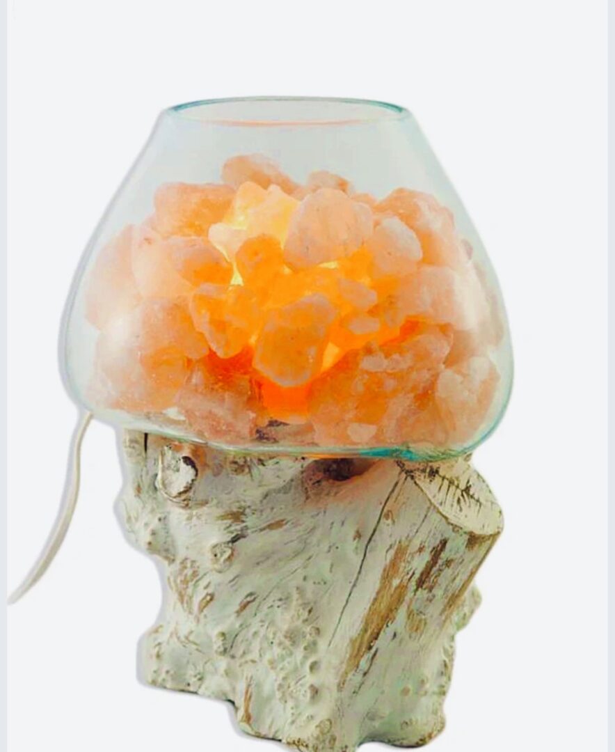 Lampada Sale Bianca 6KG, Originali lampade artigianali realizzate in legno e vetro soffiato con sale Himalaya . Queste lampade sono fatte su radiche di legno con una soffiatura di vetro . . Belle per illuminare, ma anche per arredare tavolini e credenze, librerie o consolle, donando un tocco etnico all’ ambiente con il beneficio del sale himalayano ,