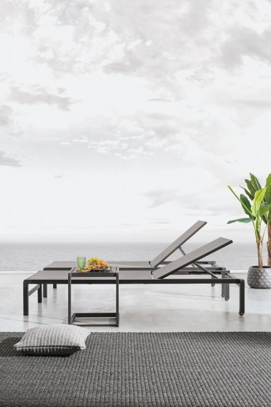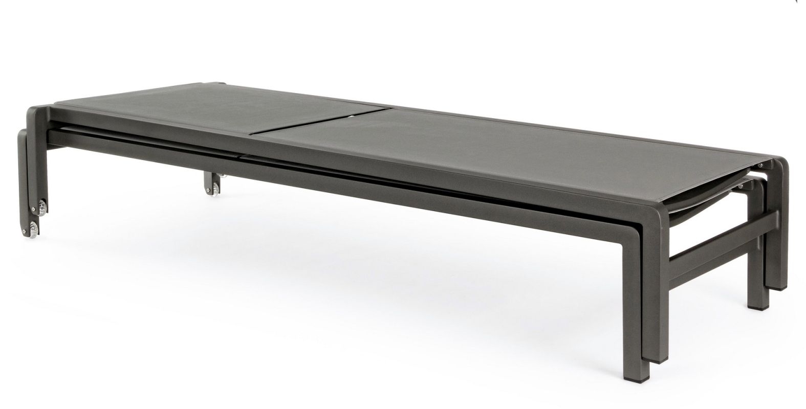 Lettino Prendisole Konnor Impilabile, Struttura in alluminio verniciato a polvere (poliestere). La seduta e lo schienale sono in textilene 1×1. Ruote in plastica e viteria in acciaio inossidabile. Lo schienale è reclinabile con 6 posizioni. Lettino impilabile.