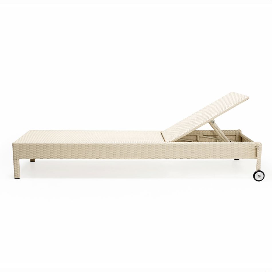 Lettino Prendisole Sunset, design moderno, lineare e leggero, grazie agli spessori contenuti della fascia laterale e dei piedi. Dotato di schienale reclinabile con varie posizioni per il massimo comfort. Grazie all’uso di speciali materiali ad alta performanza, questo prodotto garantisce ottima resistenza alle intemperie, allo sporco, alla polvere e alle macchie.