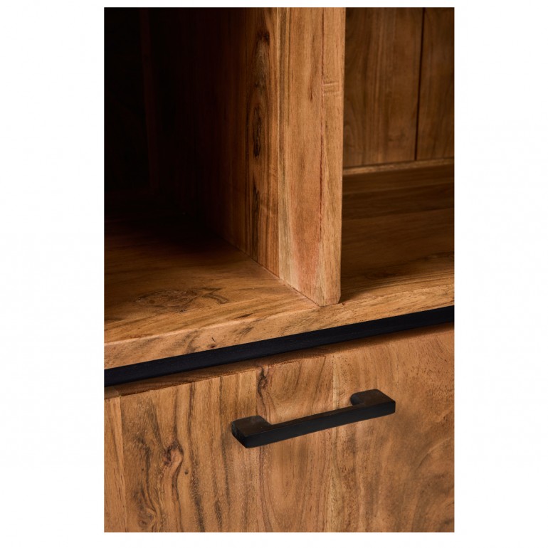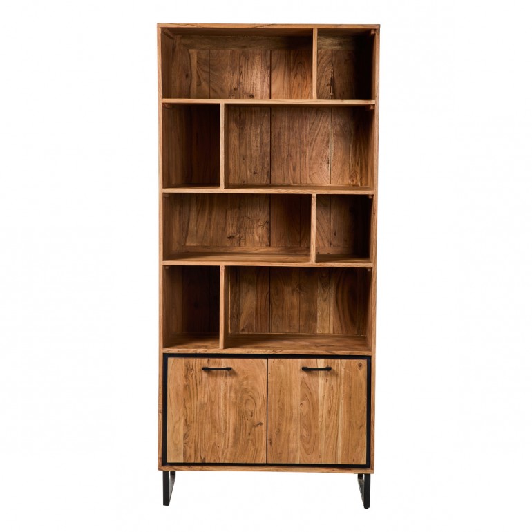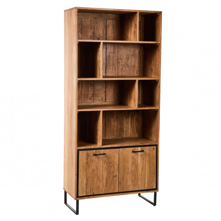 Libreria Farlez , costruita interamente in vero legno massello di acacia. Composta da 2 ante e ripiani a giorno nella parte superiore.