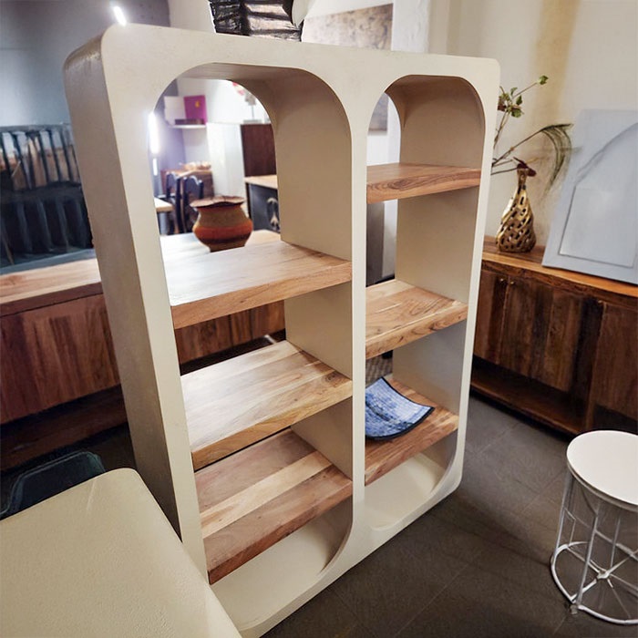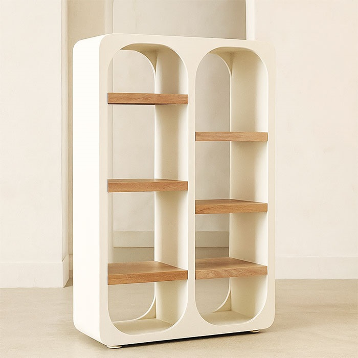 Un connubio perfetto tra minimalismo contemporaneo ed eleganza vintage: la Libreria Roma Antica è un elemento d’arredo scenografico, capace di trasformare qualsiasi ambiente con la sua presenza unica e raffinata. Le sue linee curve e armoniose, ispirate allo stile shabby chic, sono esaltate dalla finitura in calce romana, che conferisce un effetto materico naturale e sofisticato.