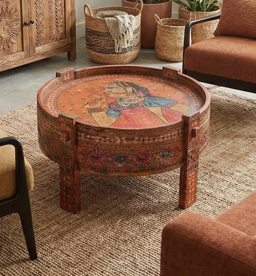 Questa macina indiana in legno è un oggetto dal fascino autentico, capace di raccontare una storia fatta di tradizione, artigianato e cultura. Realizzata interamente in legno e dipinta e decorata a mano, è un pezzo unico, irripetibile nelle sue forme, nei colori e nei dettagli, che la rendono un vero elemento d’arredo dal forte impatto visivo. Ogni imperfezione e ogni segno del tempo contribuiscono al suo carattere, valorizzandone l’anima artigianale.