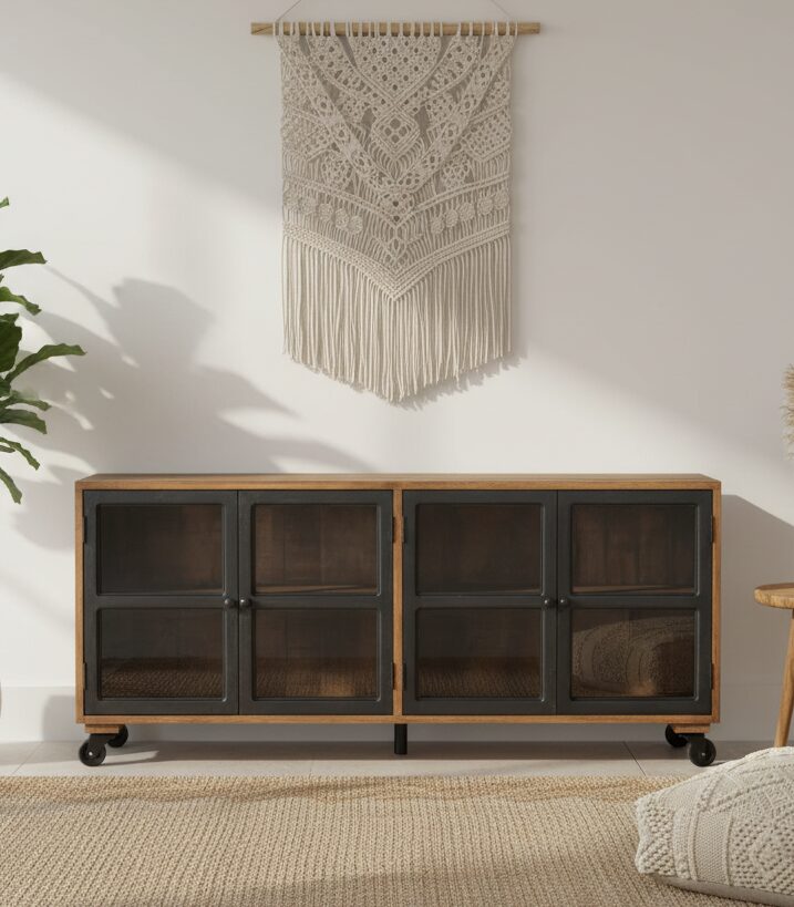 L’equilibrio tra il calore organico del legno massello e la componente meccanica delle ruote trasforma questa madia in un elemento d’arredo versatile e di grande personalità, capace di adattarsi con naturalezza a diverse zone della casa, dal living alla sala da pranzo, fino a studi professionali ricercati. Oltre al suo impatto estetico unico, la credenza offre un’ottima capacità contenitiva, garantendo spazi ampi e solidi per organizzare con ordine ogni tipo di oggetto. Scegliere questo pezzo significa puntare su un manufatto che unisce l’autenticità del legno lavorato a mano a una praticità senza precedenti, offrendo una soluzione d’arredo che non è solo bella da vedere, ma pensata per evolversi insieme al dinamismo della vita quotidiana.