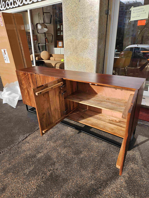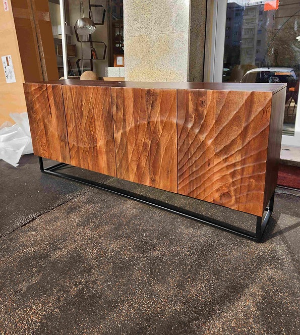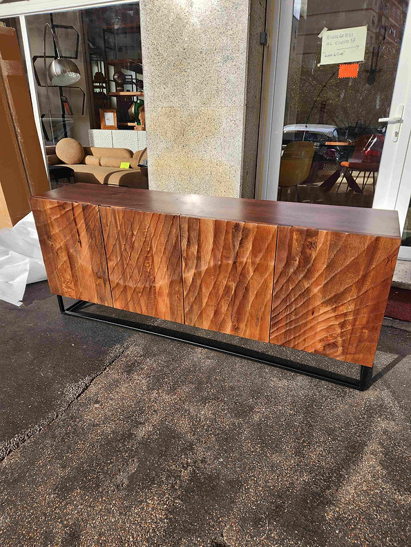 Madia Credenza Scorpion, credenza in vero legno massello, lavorata artigianalmente a mano. Composta da 4 ante, con frontali lavorate e intagliate a mano.