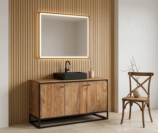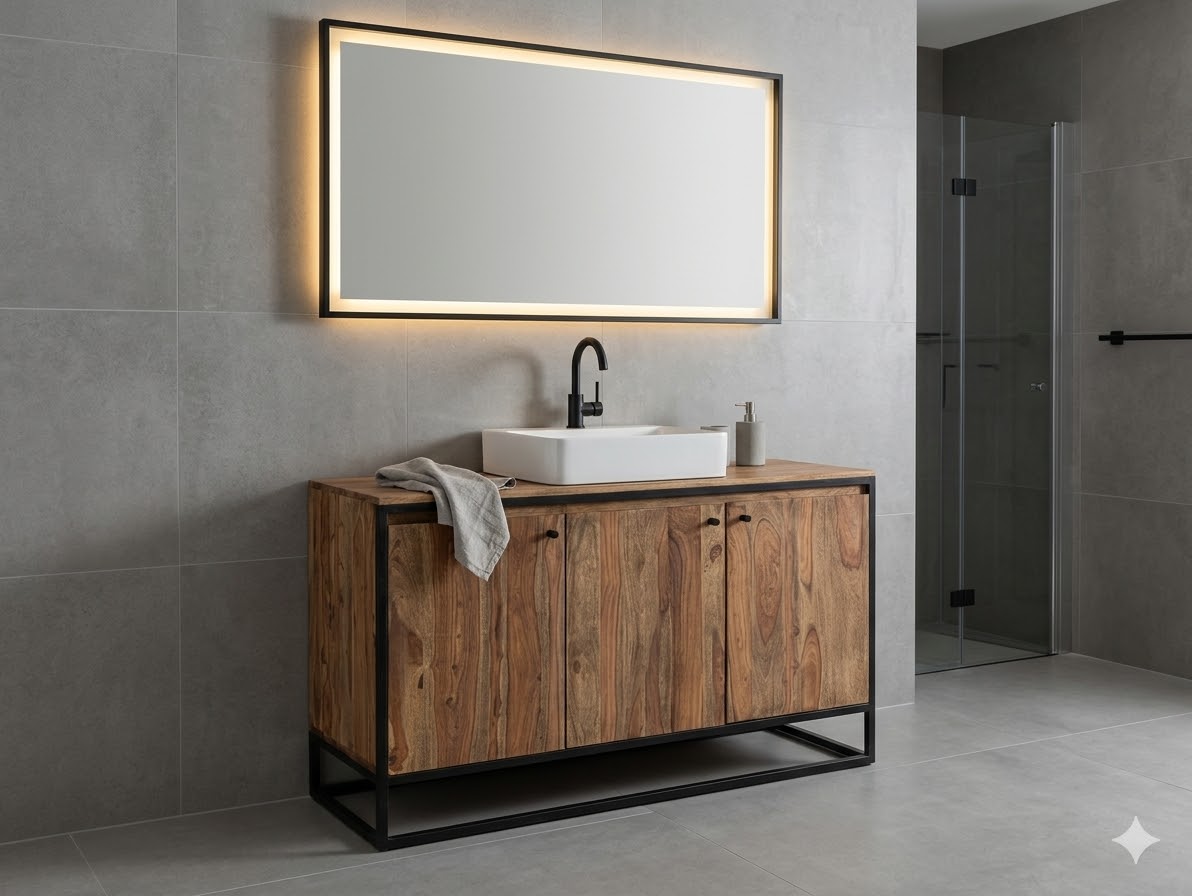 Il Design di questo mobile è unico ed originale. Un mobile di qualita’ ,fatto a mano in india e adatto per uso mobile bagno