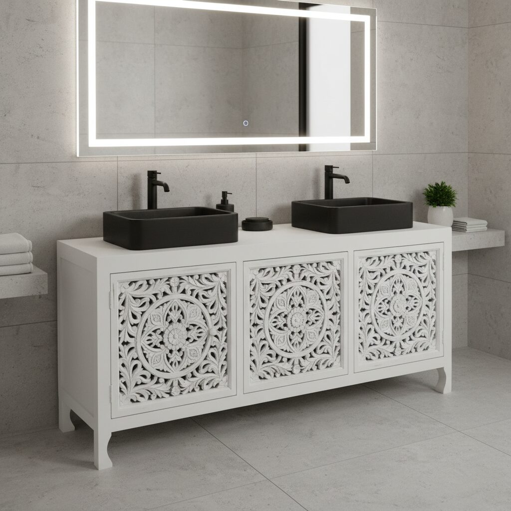 Mobile Bagno Oriente 4 White realizzato artigianalmente con acacia massello finitura white