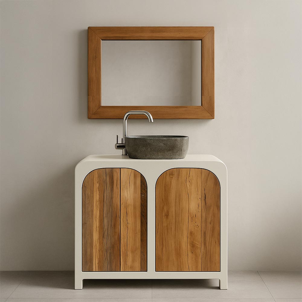 Mobile Bagno Santo in legno riciclato è un complemento d’arredo unico, realizzato con materiali recuperati e lavorati artigianalmente per valorizzarne storia e carattere. Ogni tavola presenta sfumature, venature e leggere imperfezioni che rendono la credenza un pezzo davvero originale, ricco di personalità e dal fascino naturalmente vissuto.