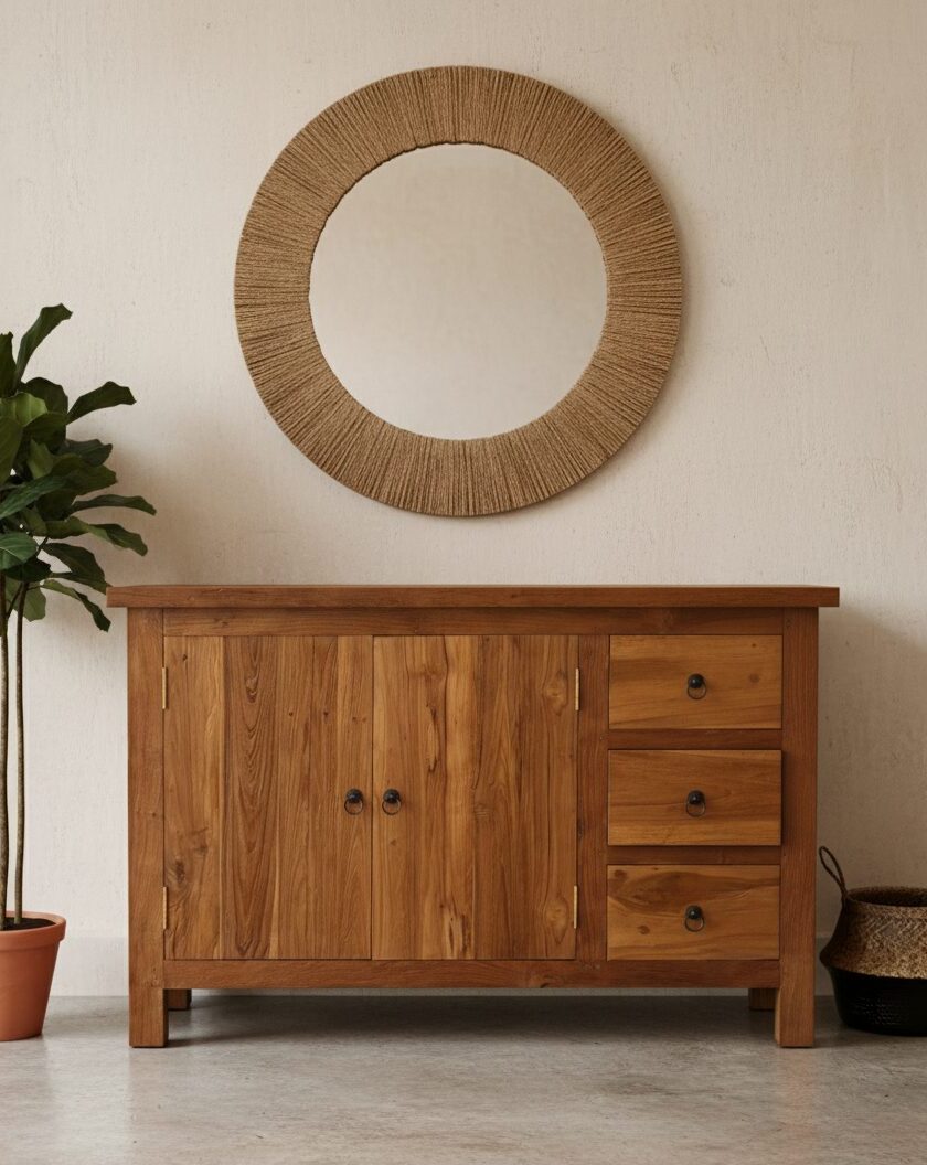 Mobile Credenza Teak Ric 2A-3Css rappresenta un’opera d’arte ecosostenibile di rara bellezza, concepita per chi desidera arredare i propri spazi con un pezzo che racchiuda in sé storia, carattere e rispetto per l’ambiente.