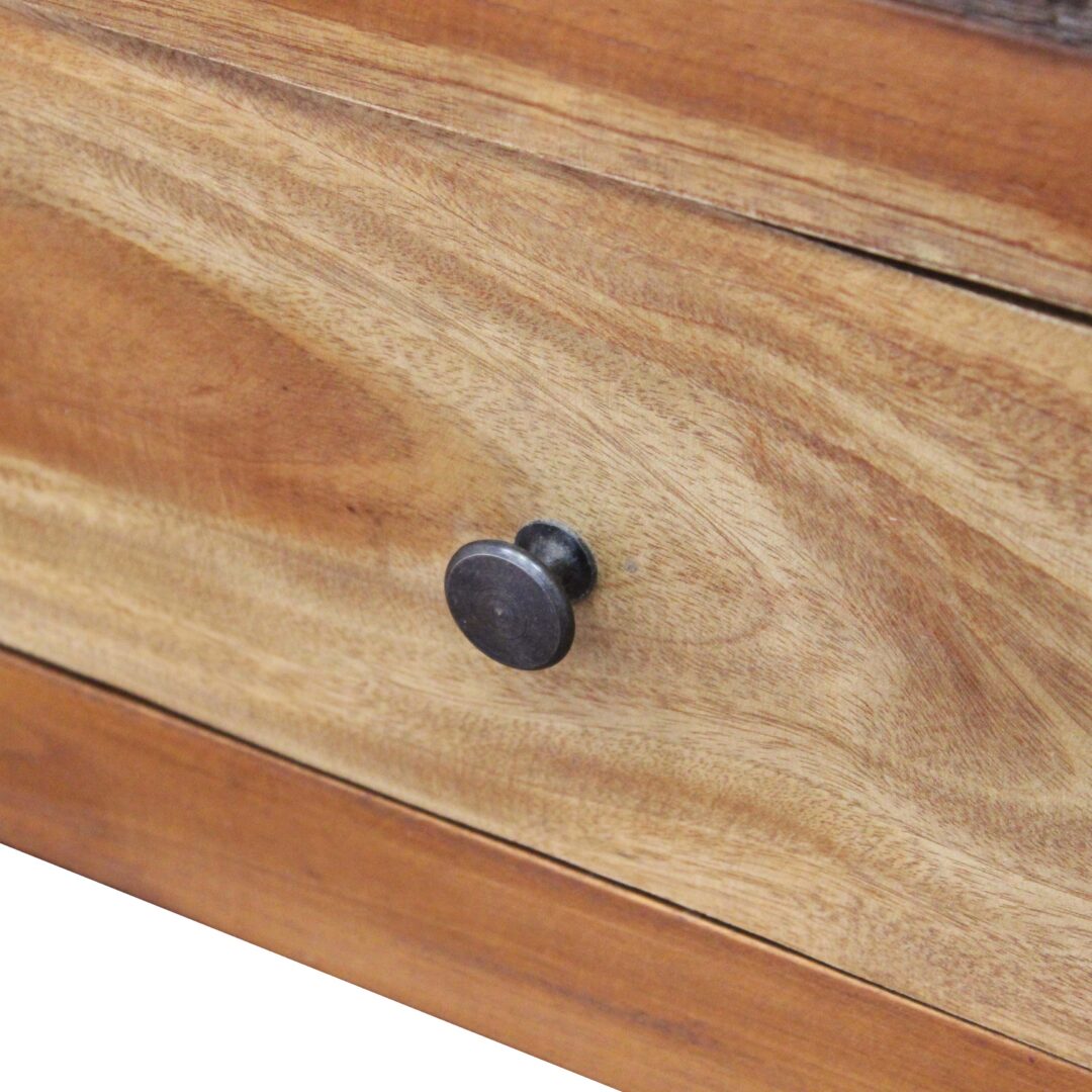 Il design essenziale e armonioso è impreziosito da finiture artigianali che esaltano la bellezza autentica del mogano. La superficie opaca mette in risalto la naturalezza del legno, valorizzandone ogni sfumatura e caratteristica unica.