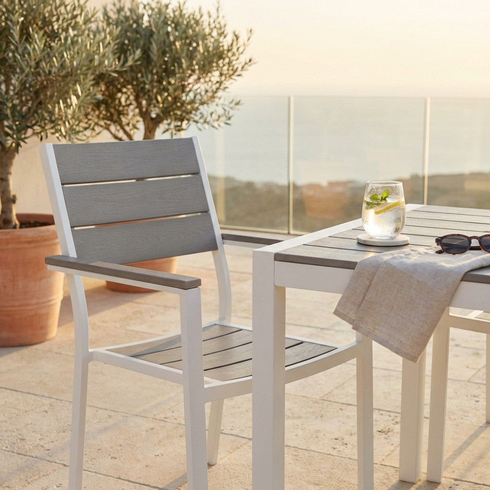 Il design moderno e minimalista si adatta perfettamente a terrazze, balconi, verande o aree verdi, offrendo comfort e praticità. Impilabili, sono facili da riporre e spostare secondo le esigenze.