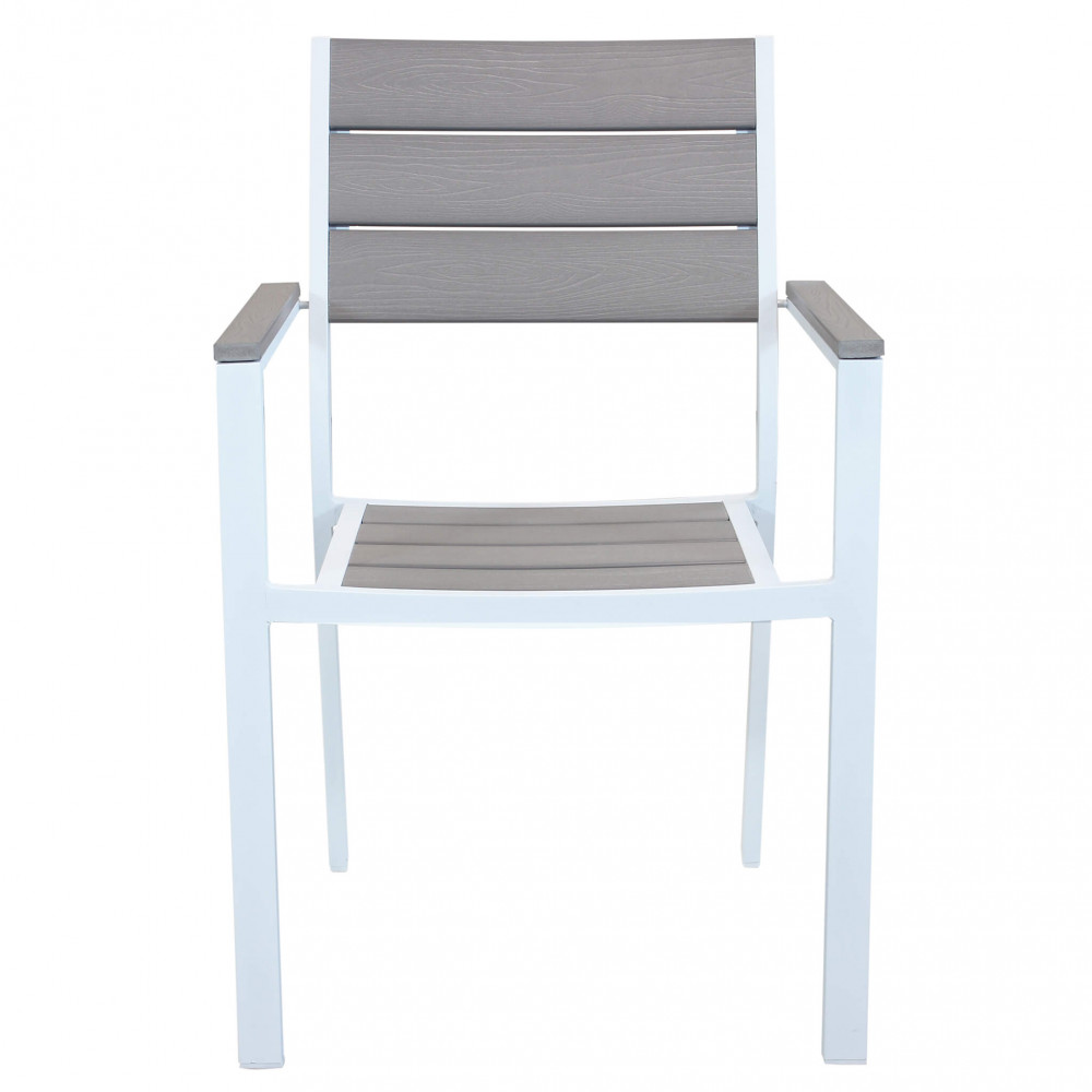 Poltrona Cervia Impilabile, Struttura in alluminio verniciato, schienale e seduta con doghe in POLYWOOD.