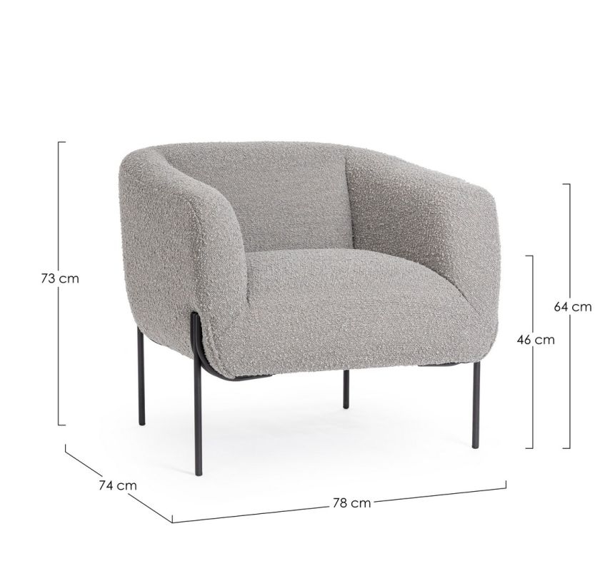 La poltrona Claudine unisce eleganza contemporanea e comfort quotidiano, diventando un complemento d’arredo ideale per ambienti raffinati e accoglienti. La struttura in legno assicura solidità e durata nel tempo, mentre il rivestimento effetto bouclé dona alla seduta una texture morbida e ricercata, perfetta per valorizzare lo spazio con un tocco di stile.