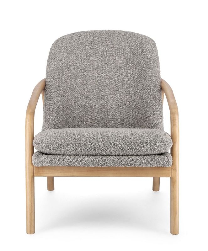 La struttura in legno assicura solidità e affidabilità nel tempo, mentre il raffinato rivestimento in tessuto effetto bouclè regala una texture morbida e sofisticata, piacevole al tatto e perfetta per creare atmosfere calde e accoglienti. La seduta è arricchita da un cuscino sfoderabile, pensato per offrire praticità senza rinunciare all’estetica, ideale per una manutenzione semplice e quotidiana.