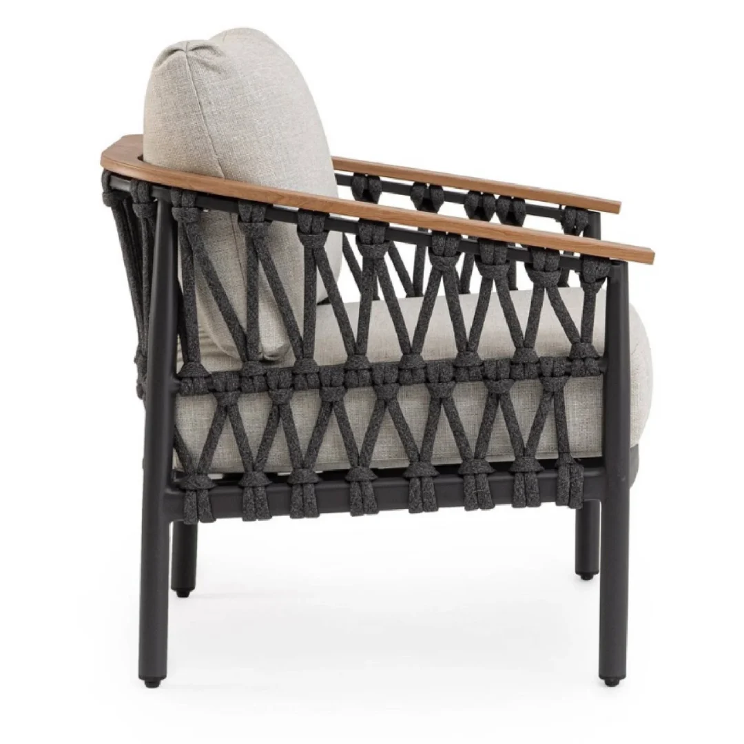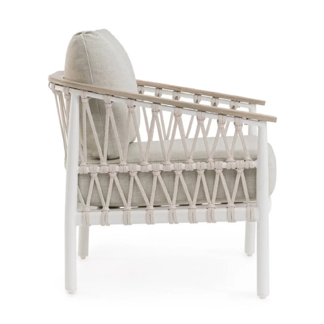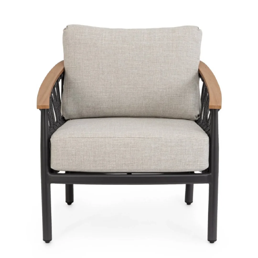La poltrona da giardino Fenix è la scelta perfetta per chi desidera unire design contemporaneo, comfort e resistenza negli spazi esterni. La struttura in alluminio verniciato a polvere con finitura in poliestere garantisce solidità, leggerezza e un’elevata protezione dagli agenti atmosferici, rendendo la poltrona adatta ad un utilizzo prolungato all’aperto. Le linee pulite e moderne sono arricchite dai braccioli in alluminio con verniciatura effetto legno, un dettaglio raffinato che richiama il calore dei materiali naturali mantenendo tutti i vantaggi della tecnologia dei materiali moderni.
