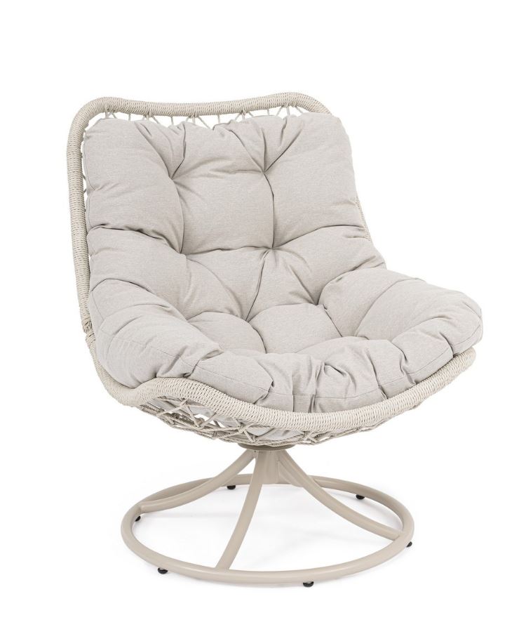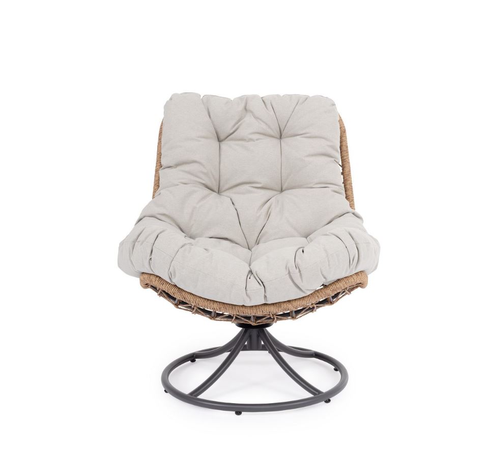 Dotata di una pratica base girevole, la poltrona AZORES permette movimenti fluidi e naturali, migliorando l’esperienza di seduta e adattandosi con facilità a diverse esigenze di utilizzo. Il cuscino, non sfoderabile, è rivestito in tessuto idrorepellente in poliestere, progettato per resistere all’umidità e garantire comfort e morbidezza anche in ambienti esterni. Con una portata massima di 130 kg, AZORES rappresenta una soluzione affidabile e versatile, ideale per vivere l’outdoor con stile e comodità.