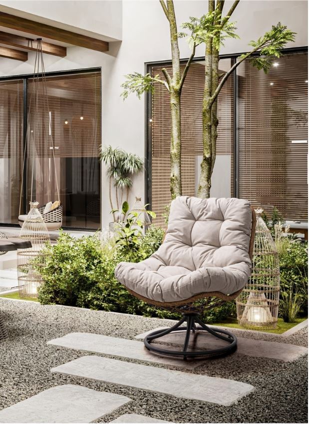 La poltrona da giardino girevole AZORES è pensata per chi desidera unire comfort, funzionalità e stile contemporaneo negli spazi outdoor.