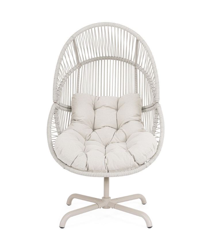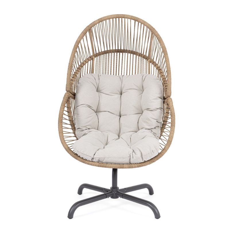 La base girevole consente movimenti fluidi e pratici, rendendo la seduta ancora più funzionale e piacevole. Il cuscino, non sfoderabile, è rivestito in tessuto idrorepellente in poliestere, progettato per resistere all’umidità e mantenere una piacevole morbidezza anche in ambienti esterni. Con una portata massima di 130 kg, la poltrona Palawan rappresenta una scelta versatile e affidabile per vivere l’outdoor all’insegna del relax e dello stile.