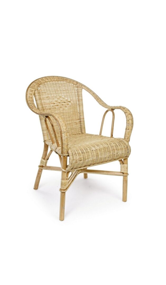 L’intreccio di questa poltrona è in midollino, rifinitura con vernice melaminica.