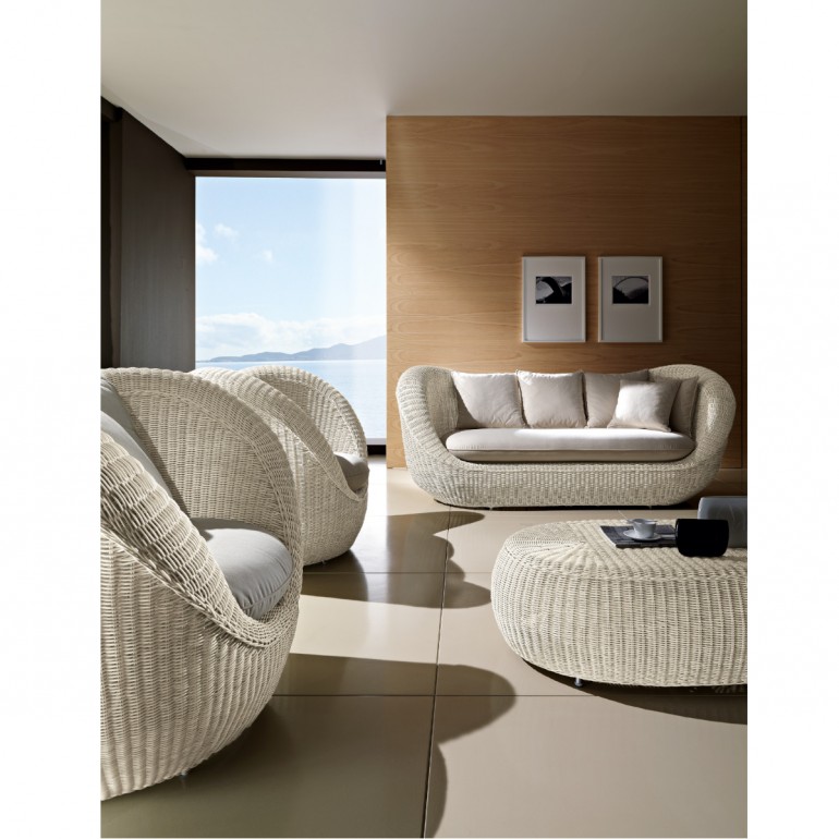 Il Polietilene ad alta densità di marca Rehau, intrecciato a mano , rende il divano un prodotto di qualità elevata.