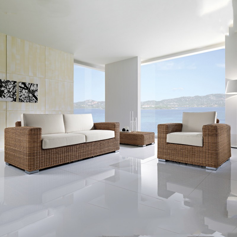 Poltrona Penelope Rattan Sintetico, La fibra polyrattan (rattan sintetico) utilizzata è top di gamma per qualità estetica e longevità (marca REHAU). Resistente ad agenti atmosferici e escursioni termiche. Il polietilene ad alta densità di marca Rehau, intrecciato a mano su telai di alluminio, rende questo set arredo da giardino un prodotto d’arredo di qualità . Le strutture in alluminio sono composte da tubolari elettro-saldati e verniciati a polvere epossidica
