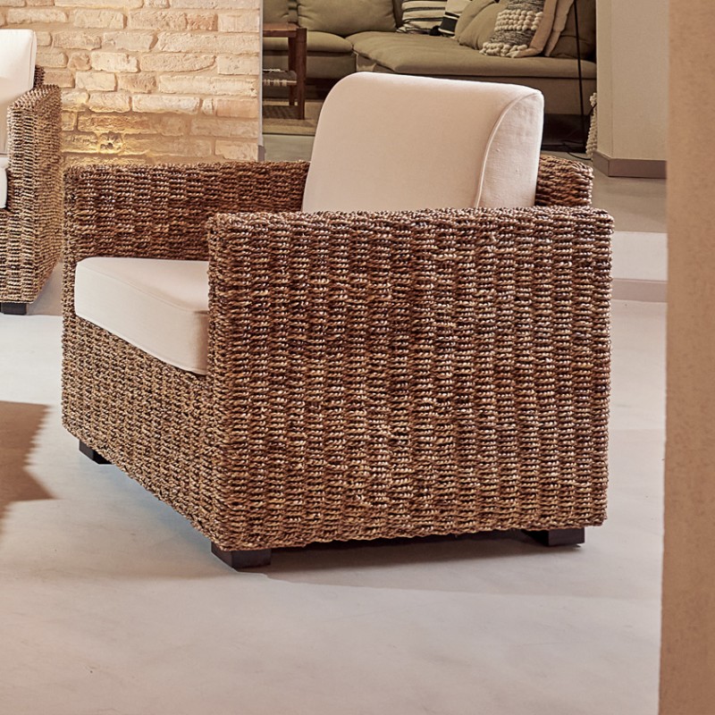 Poltrona Small Box Rattan Naturale, Questo prodotto è di fattura artigiana e fatto a mano in Indonesia, in fibra naturale raccolta ed essiccata, viene trasformata in una treccia solida e robusta, 100% ecologica.
