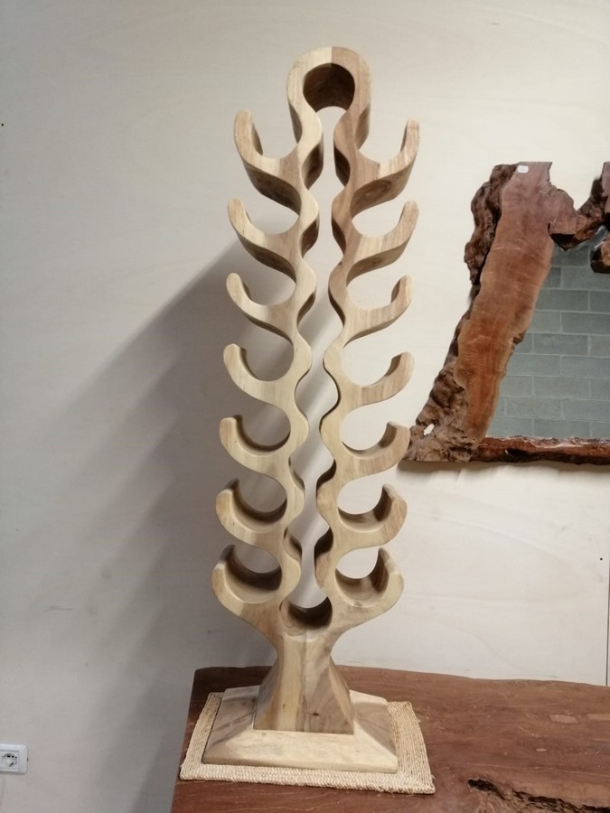 Porta Bottiglia Albero Legno, porta bottiglie costruito in legno di suar di acacia massello.
