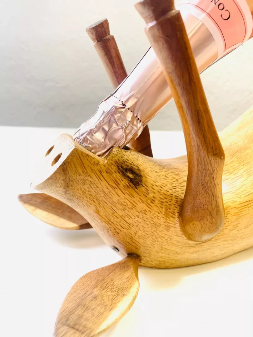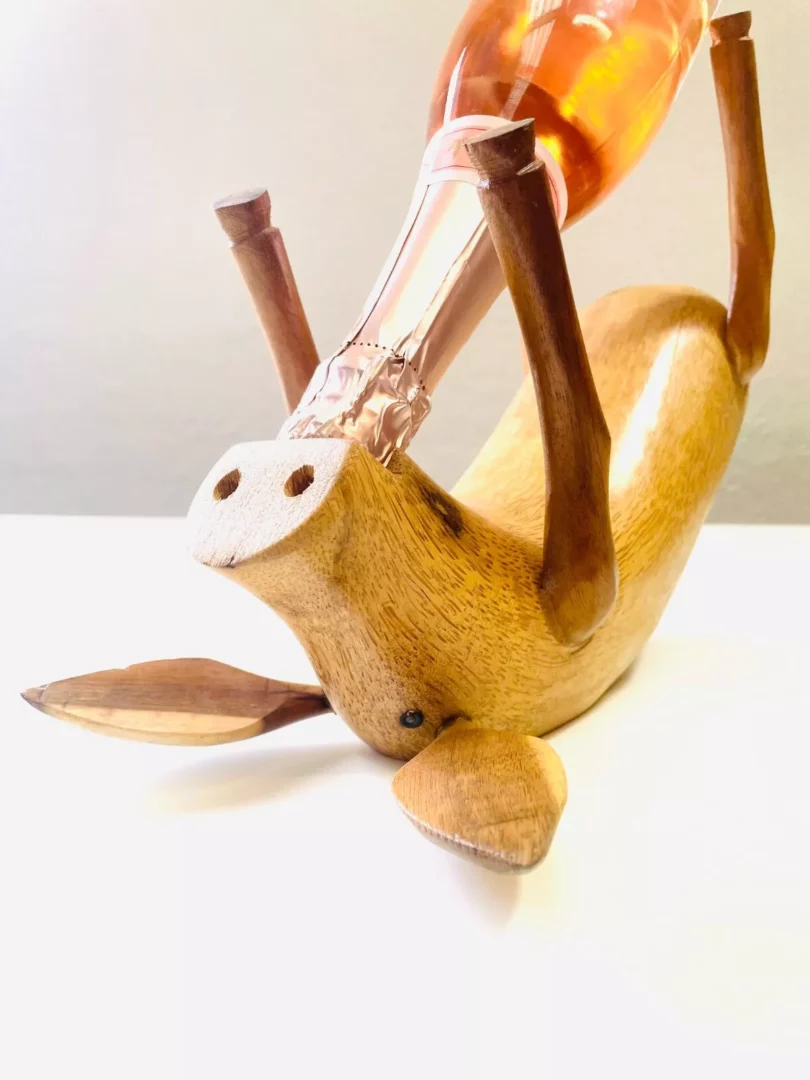 Portabottiglia Maialino Legno, portabottiglia costruito interamente in legno massello. A forma di maialino.